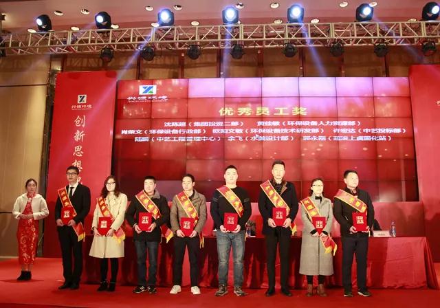 趙輝、徐玲芳、孫香連、馬利平、葛更旺等29人先后被授予“服務標兵獎”、“老黃牛奉獻獎”、“業績獎”、“新人獎”、“優秀員工獎”。 興源環保法務團隊被授予“總裁特別貢獻獎”;興源環保事業部、興源中藝新疆項目團隊、興源水美工程部、興源疏浚市場部4個單位被授予“先進團隊”;杭州中藝生態環境工程有限公司、浙江水美環保工程有限公司被授予“先進企業”,集團管理層上臺為先進團體和先進個人頒發了獎金和證書。