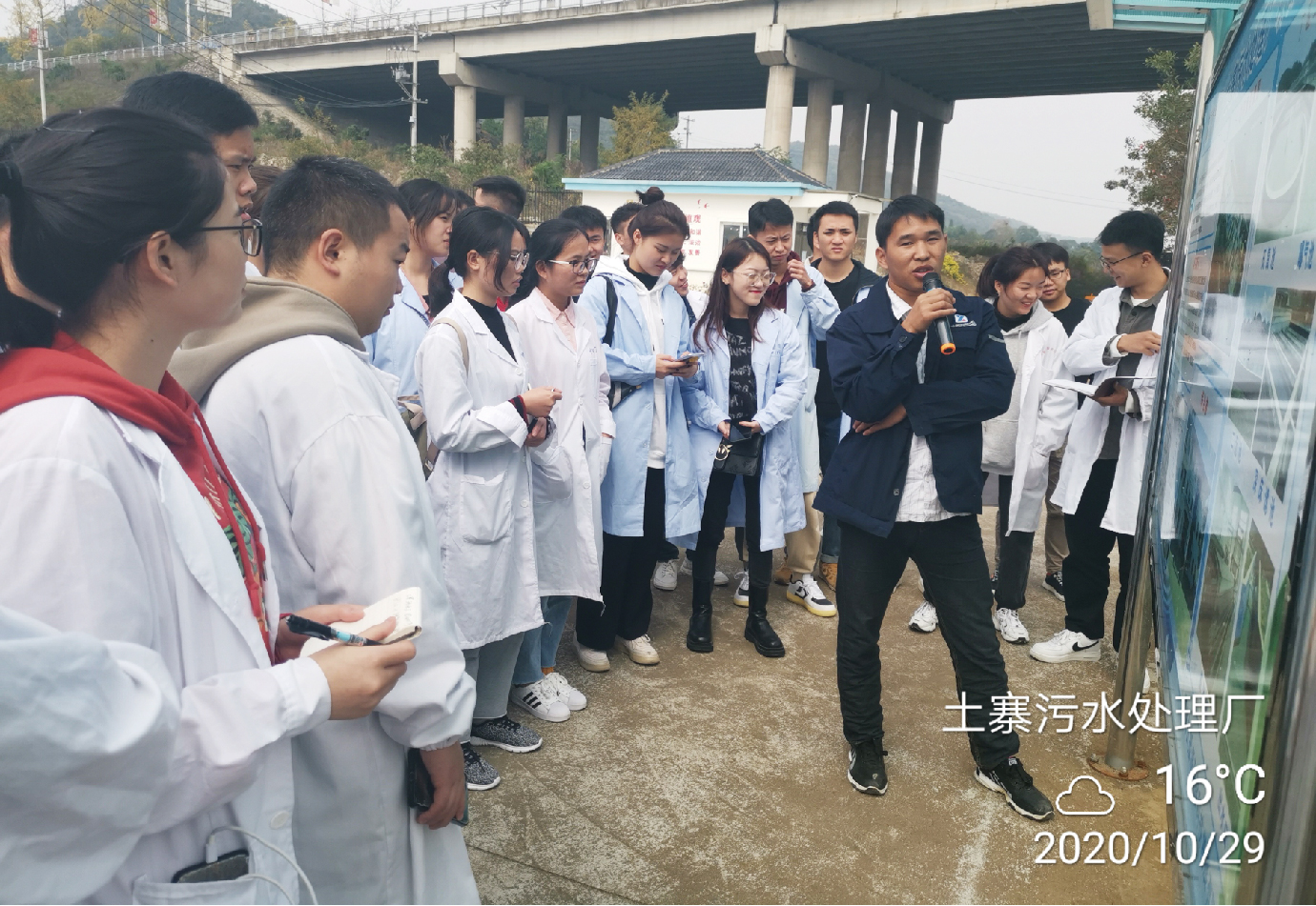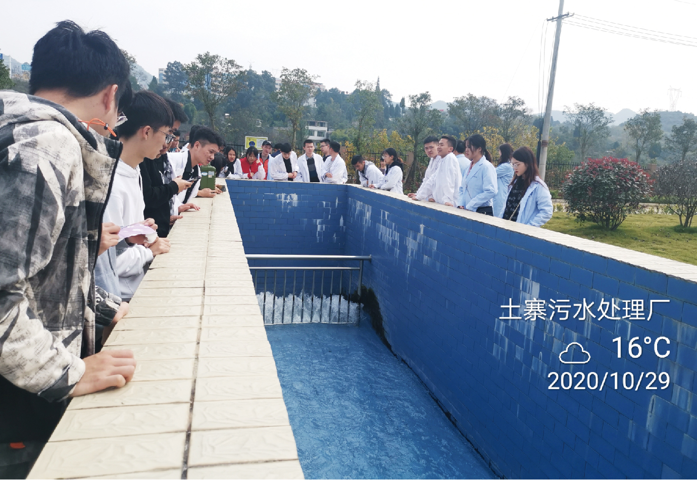 全體師生首先來(lái)到了播州區(qū)樂(lè)山污水處理廠,在樂(lè)山污水處理廠,廠區(qū)負(fù)責(zé)人向前來(lái)參觀的師生詳細(xì)講解了污水處理工藝流程,并帶領(lǐng)大家參觀了污水處理廠整個(gè)現(xiàn)場(chǎng)。從粗格柵到調(diào)節(jié)池、旋流器沉砂、MBR膜池、出水消毒池、巴氏計(jì)量槽,當(dāng)實(shí)景看到整個(gè)污水處理工藝流程后,全體師生更加深刻地學(xué)習(xí)和感受到了污水處理工藝的技術(shù),以及污水處理各種設(shè)備的實(shí)操經(jīng)驗(yàn),同學(xué)們紛紛向污水處理廠工作人員探討污水處理的相關(guān)技術(shù)問(wèn)題,得到了學(xué)院師生的高度評(píng)價(jià)。