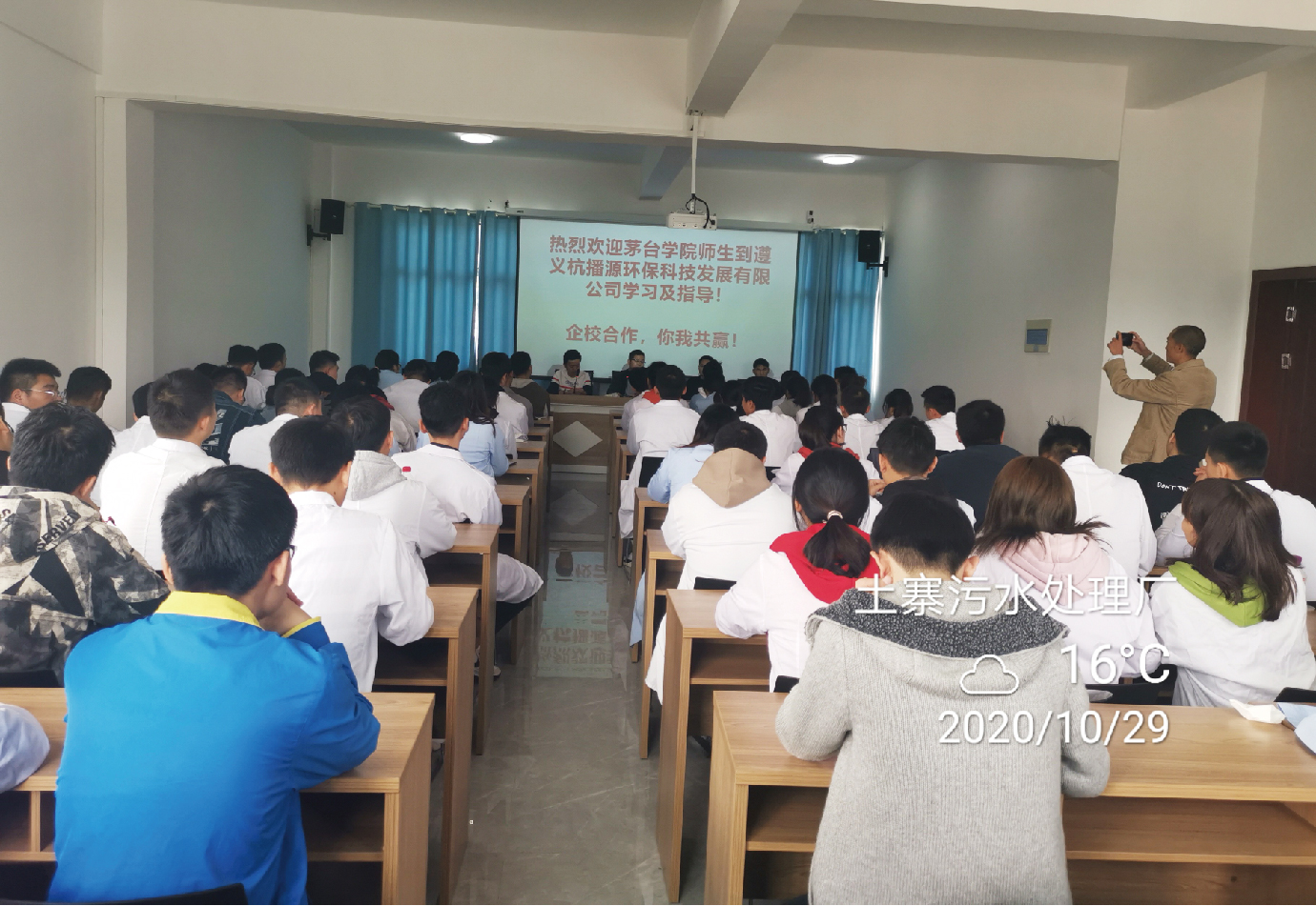播州區(qū)土寨污水處理廠主體單位遵義杭播源環(huán)??萍及l(fā)展有限公司主要領(lǐng)導(dǎo)接待了茅臺(tái)學(xué)院的全體師生,向大家介紹了新希望·興源環(huán)境下屬遵義杭播源環(huán)??萍及l(fā)展有限公司承接的播州區(qū)城鎮(zhèn)污水處理項(xiàng)目簡(jiǎn)介,全體師生充分肯定遵義杭播源環(huán)??萍及l(fā)展有限公司對(duì)環(huán)保事業(yè)的敬業(yè)精神,并進(jìn)行了學(xué)術(shù)交流。